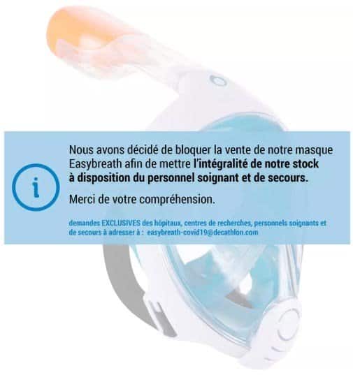 Le masque Easybreath de Décathlon avec son tuba intégré fait le bonheur des vacanciers amateurs de fonds sous-marins. En quelques semaines, il a trouvé une nouvelle utilité pour lutter contre le coronavirus. Cette métamorphose nous vient à l’origine d’Italie. L’épidémie de Covid-19 met sous pression les hôpitaux qui risquent de se retrouver en pénurie de masques pour les respirateurs. Un médecin le docteur Renato Favaro a l’idée de transformer un masque de plongée déjà disponible sur le marché en un masque pour respirateur à ventilation en pression positive continue pour thérapie peu intensive. Il se rapproche pour cela de la société de conseil en de conseil dans le domaine de l’ingénierie mécanique industrielle Isinnova.